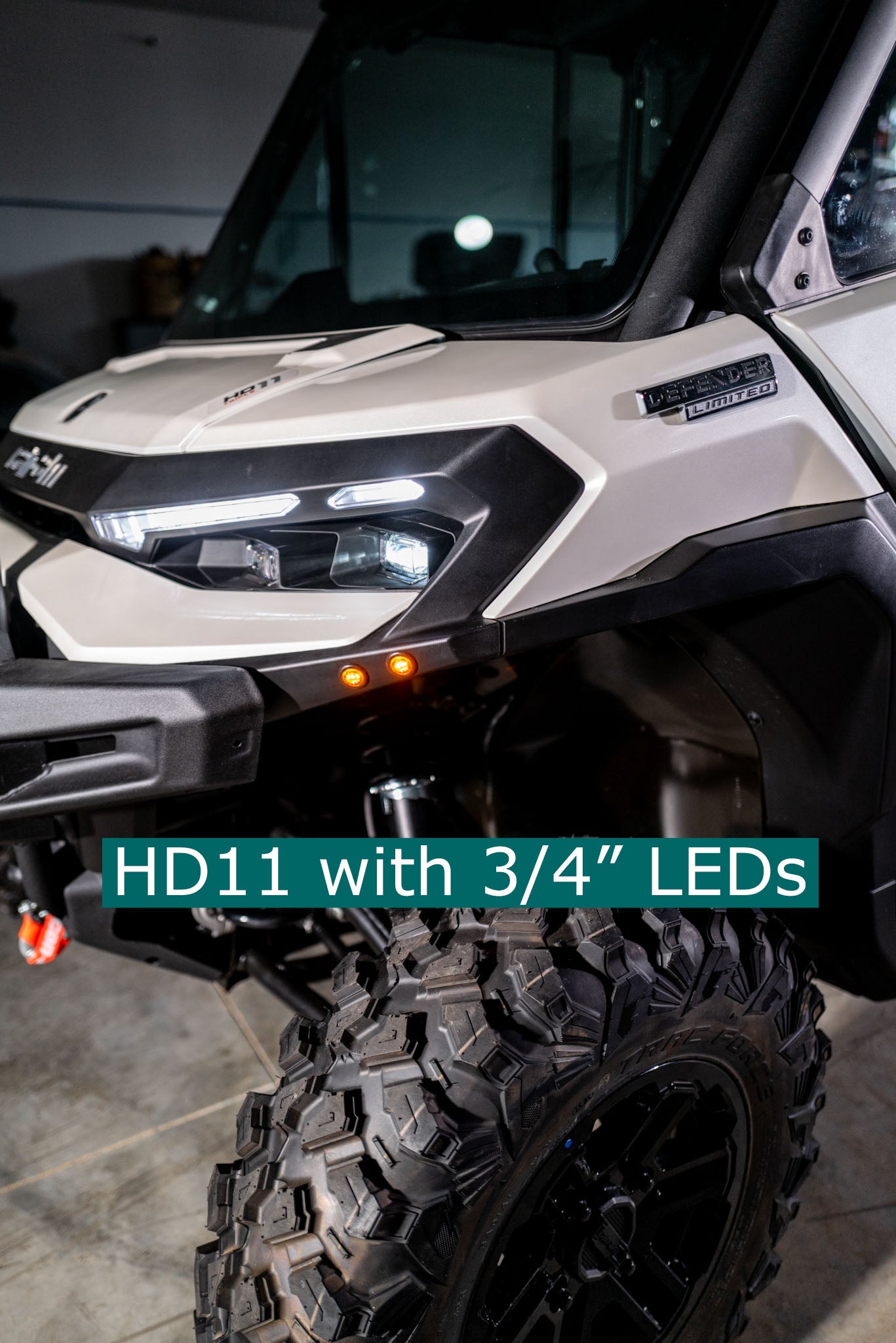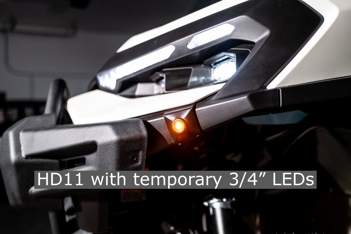 Kits ordered with round LEDs include 4 super bright ¾” round Smoked Lens LED lights as front turn indicators, flashing amber whenever turn signals or hazards are used.